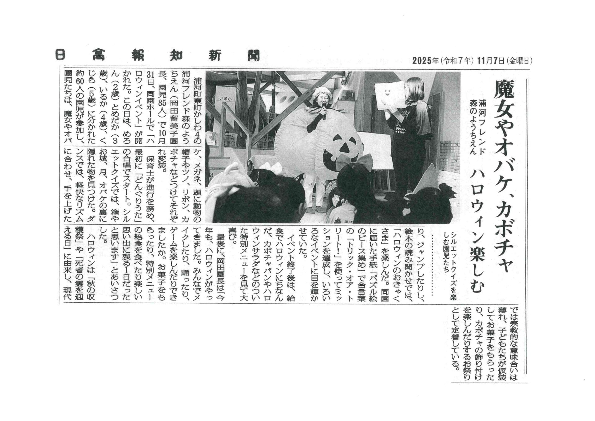 10月に行われたハロウィンパーティー、税と触れ合うイベント、植樹イベントの記事が日高報知新聞に掲載されましたので是非ご覧ください。